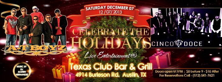 Saturday December 7 will be another hot one at the Texas Club Bar and Grill. Austin powerhouses Cinco Doce and Los A-T Boyz will heat things up at the southeast Austin Tejano nightspot with hot cumbias, spicy charangas and much more.