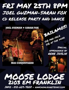 “Mas Conjuntazzo” Continues Conjunto Homecoming for Grammy Winner Joel Guzman and Sarah FoxCD Release Party to be held at Austin Moose Lodge, Friday May 25th at 8 PM